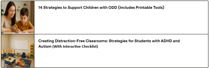 Get two powerful, printable guides to support children with attention, behavior, or regulation challenges—one focused on daily behavior at home or school, and one focused on creating supportive classroom environments.